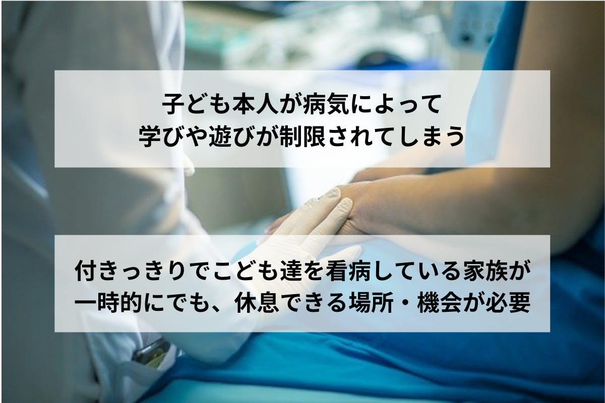 付きっきりでこどもを看病している家族にとってひと時の休息が必要です。そして、治療を頑張っても、残念な結果となってしまったお子さんの遺された家族は、一生癒えることのない悲しみを抱えて生きていかなければなりません。
