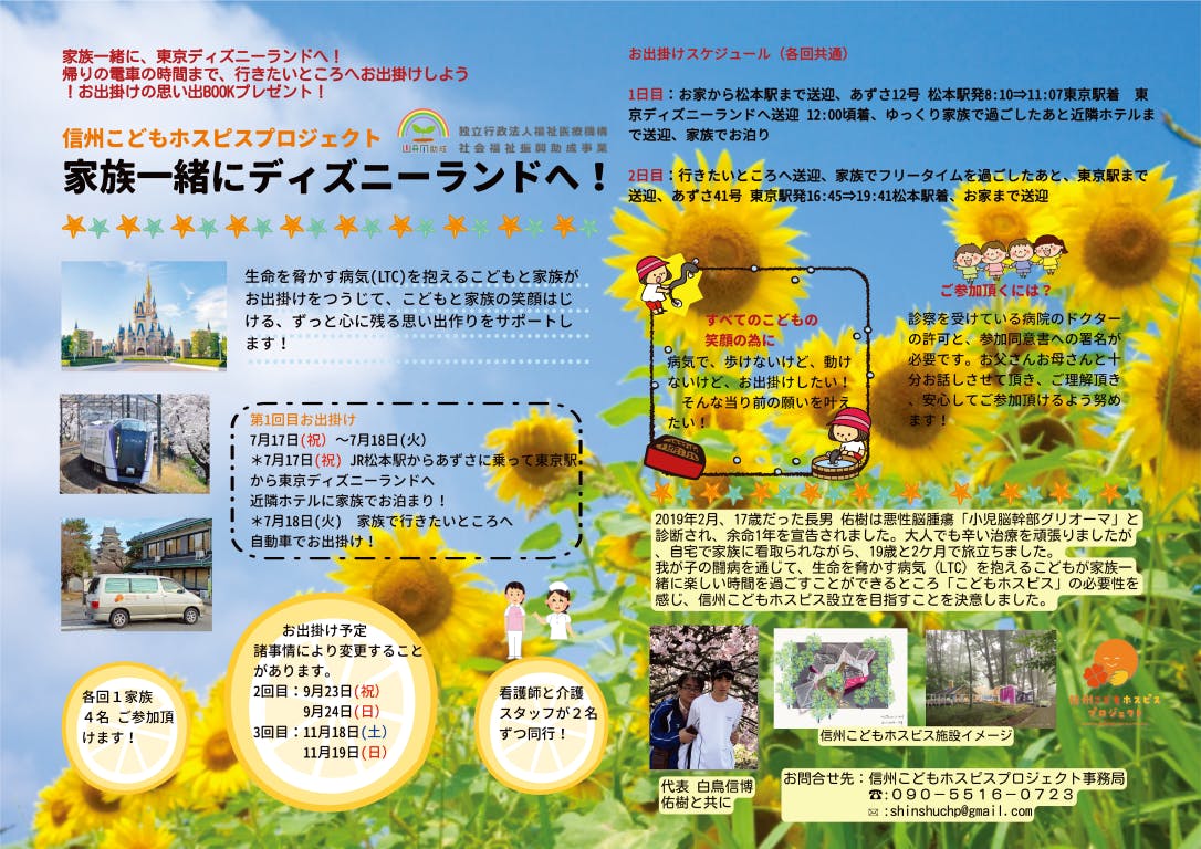 「病気のこどもが家族一緒に東京ディズニーランドへ!お出かけ支援事業」をしたい!