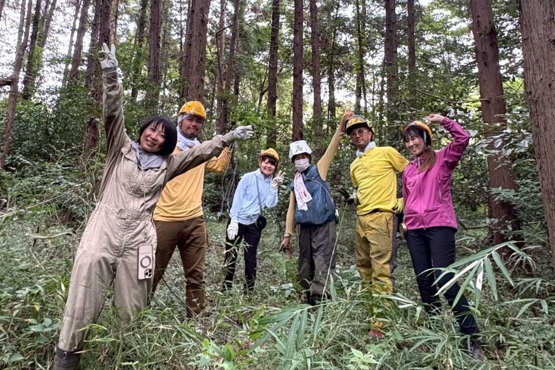 ▲マイモリでのお手入れ(土中環境改善ワークショップ)の集合写真
