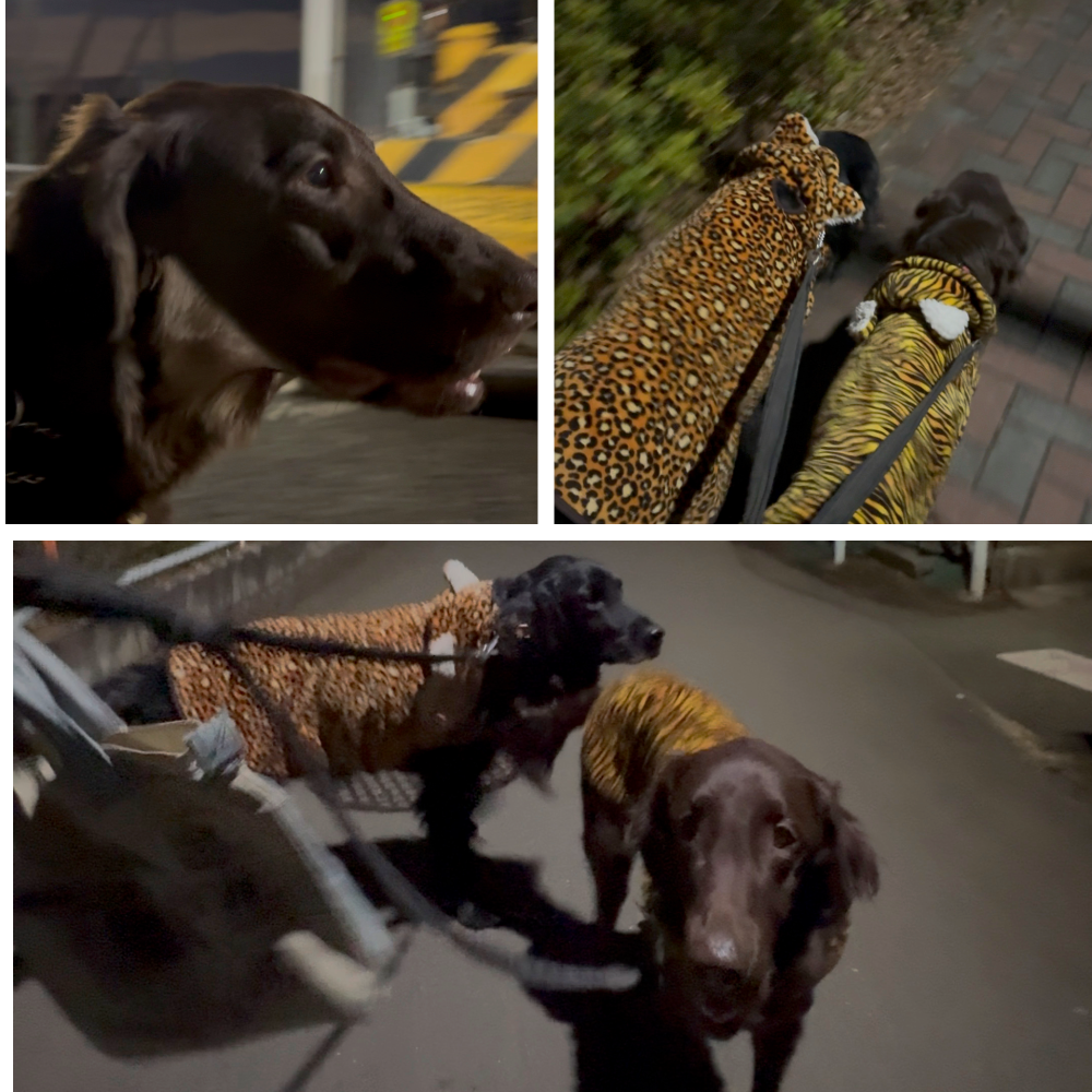 うきうきと先住犬と小走りに歩くリオ。今、これだけ歩いたり、走ったりできるのに、本当に手術をしたほうがいいんだろうか。そんな気持ちがよぎりました。
