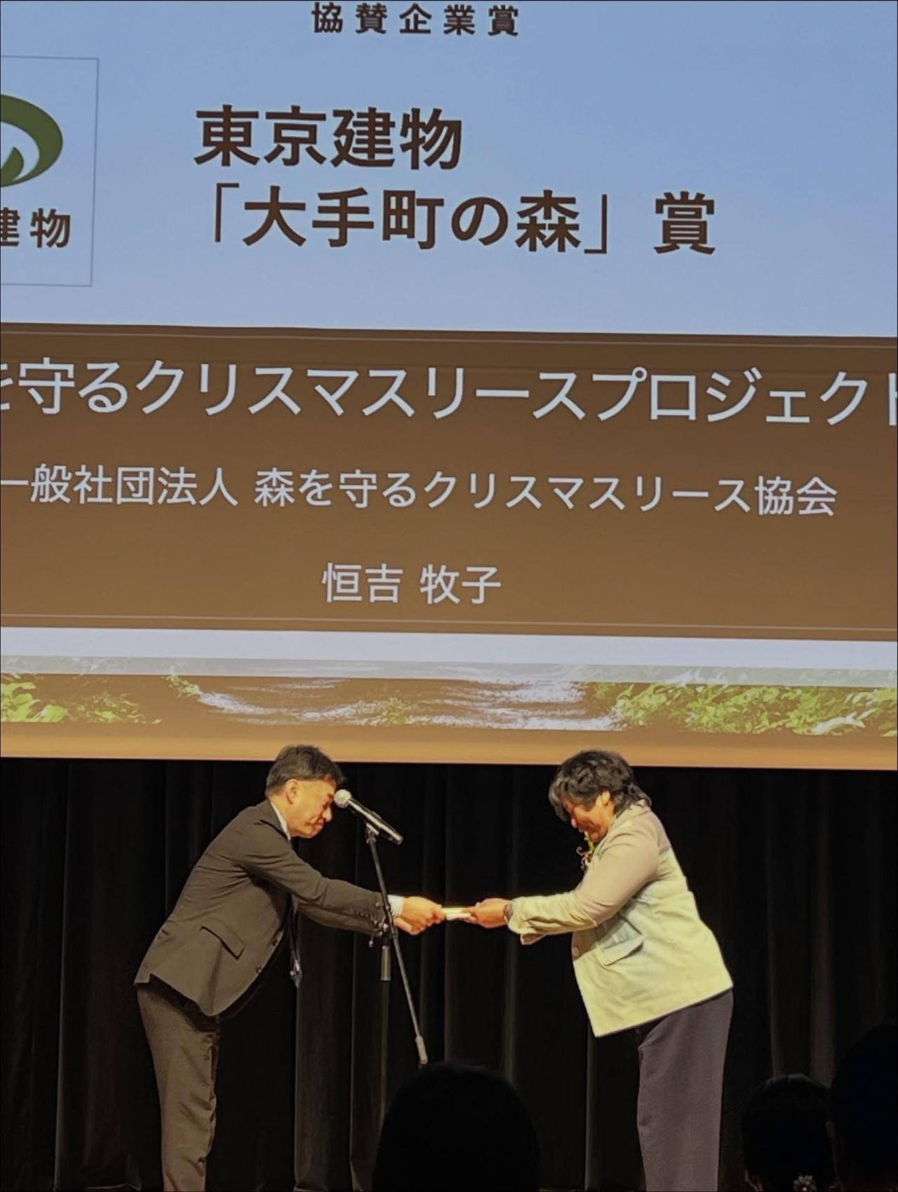 「森を守るクリスマスリースプロジェクト」が東京建物「大手町の森」賞を受賞しました。