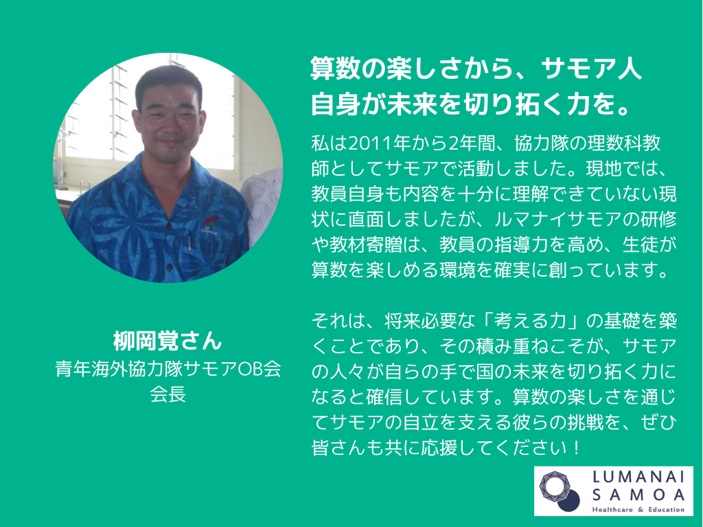「個人の想い」を「社会の力」へ。 サモアの未来(ルマナイ)を共に創る仲間に、あなたもぜひなってください。