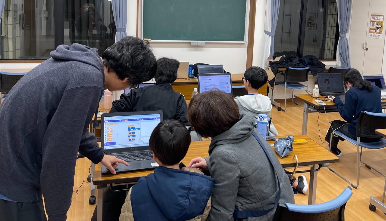 その子の親御さんがその横で、はじめてのプログラミングにのめり込んでいく。