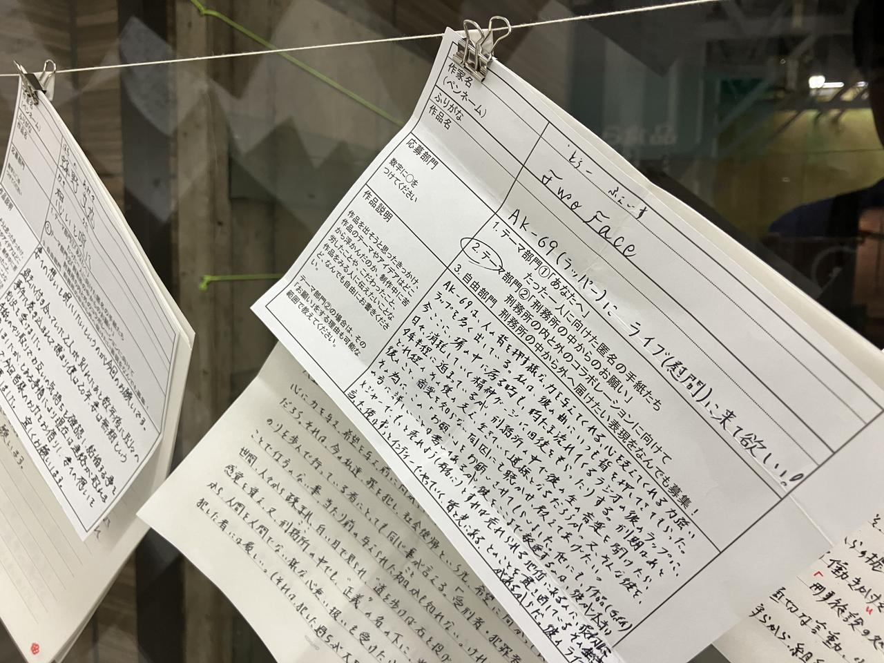 今回はじめての試みとして、また、テーマ部門を 2 つ設けました。1 つが「あなたへ」という手紙作品を募集するもの、もう 1 つが「刑務所の中からのお願い」です。従来の絵画や書、マンガ、詩、短歌や俳句などの作品は自由作品部門としました。その結果、過去 2 回の応募者数はどちらも約 50名でしたが、今回は 84 人に増えました。「アート展」や「芸術」といった言葉を聞くと、どうしても「上手な作品がつくれなければいけない」と思ったり、敷居が高いと感じたりしてしまいがちですが、アート、「表現すること」は、どんな人にも開かれていると私たちは考えています。「手紙」や「お願い」といった身近な題材を設けることで、敷居を下げて誰でも参加してもらえる企画にすることを意識しました。