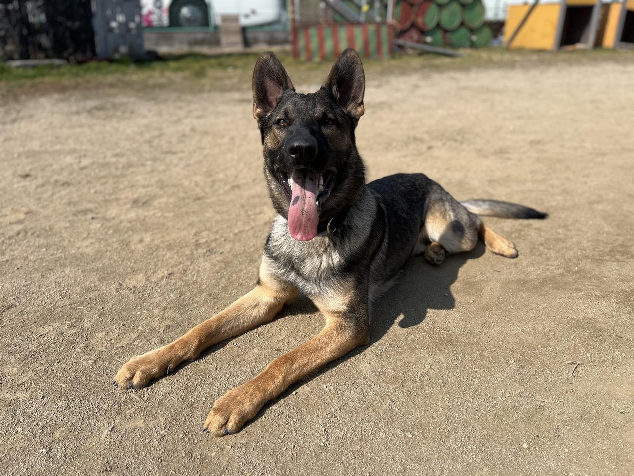 性格:見た目はカッコいいけれど、中身はとっても甘えん坊。普段はまだまだ子犬らしい一面もありますが、訓練になるとコツコツ努力するガリ勉ボーイに。真面目な性格を活かして、毎日一生懸命お勉強中です。