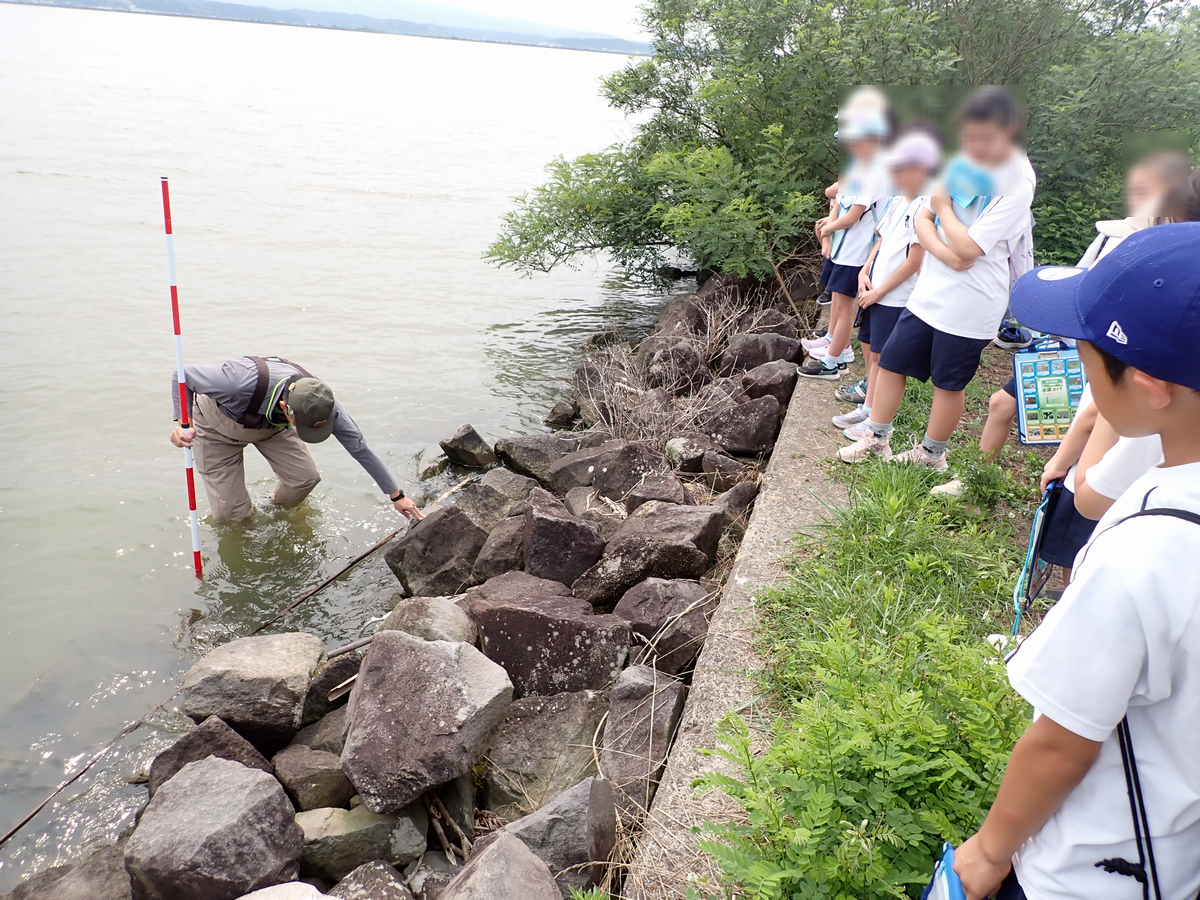 そのために、オリジナルの「環八郎湖環境学習プログラム」を開発。小学校を中心に出前授業をしています。