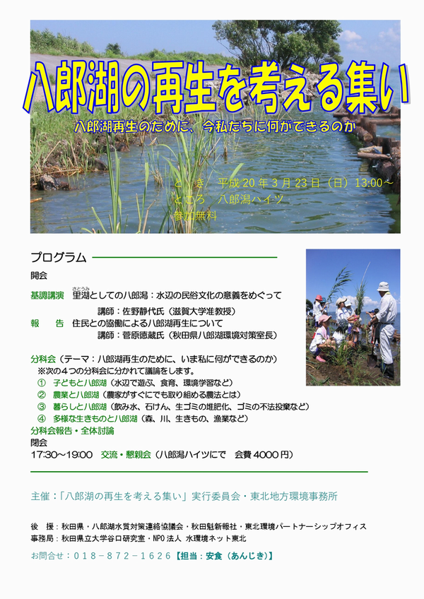 「八郎湖の再生」「環境学習」として続けてきた私たちの活動。