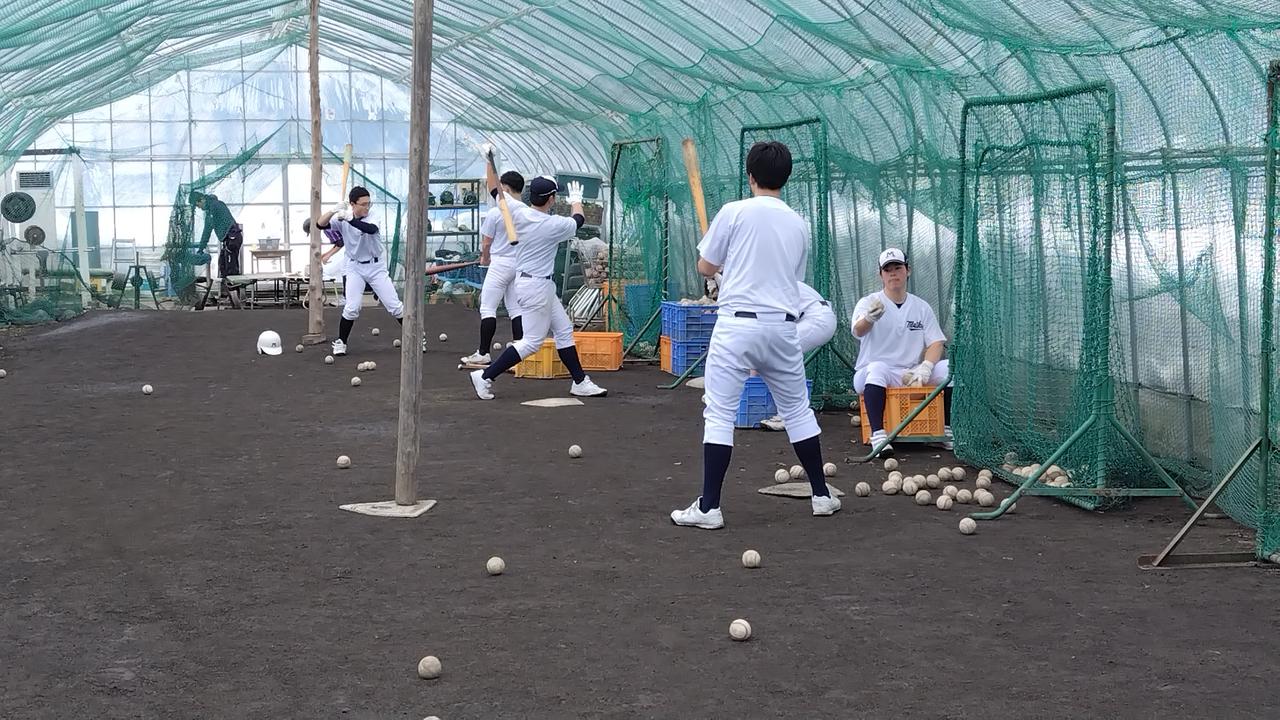 グラウンドは雪に覆われ、選手たちはビニールハウスの中で練習を重ねながら春を待つ日々を過ごしています。