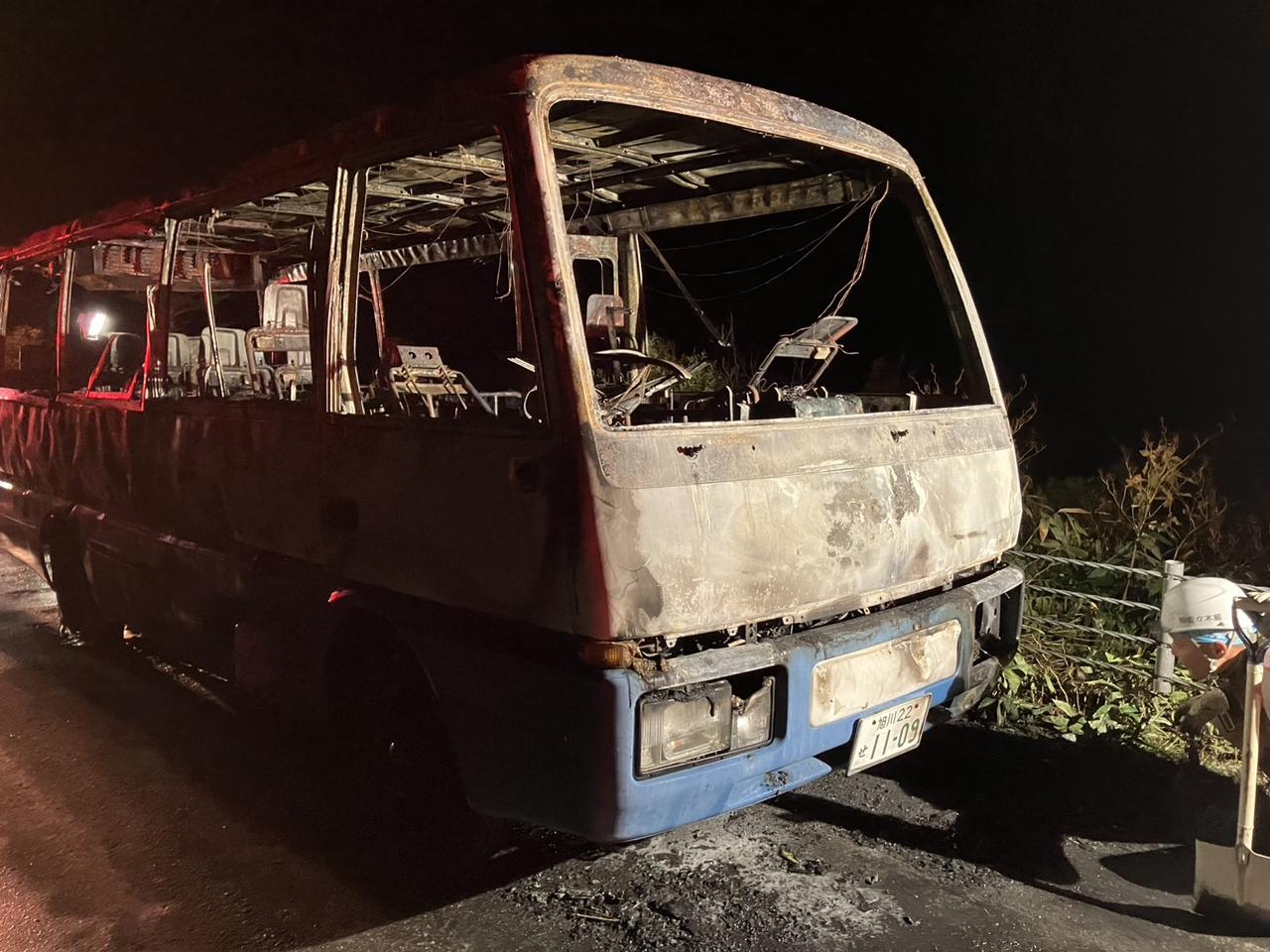 消防が駆けつけたときには、バスは骨組みだけの姿に変わっていました。