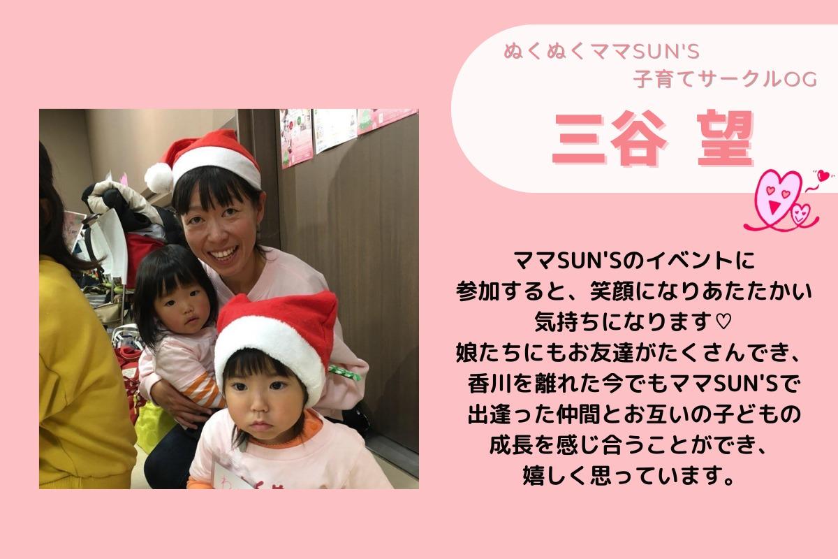 また、娘たちにもお友達がたくさんでき、香川を離れた今でもママSUN'Sで出逢った仲間とお互いの子どもの成長を感じ合うことができ、嬉しく思っています。