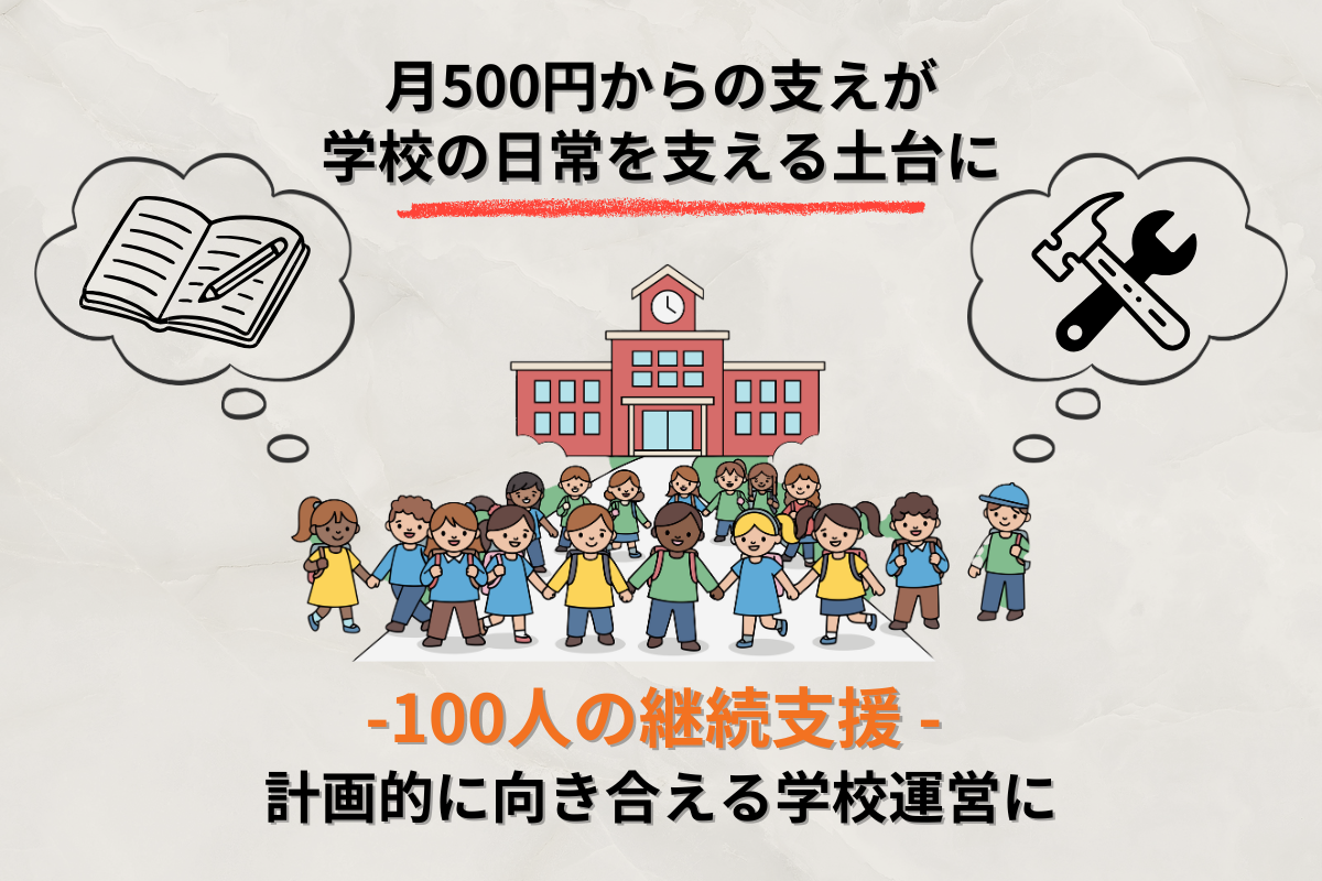 2023年には【月500円からの継続支援】として、マンスリーの取り組みに挑戦し、100人の支援者を募れました。
