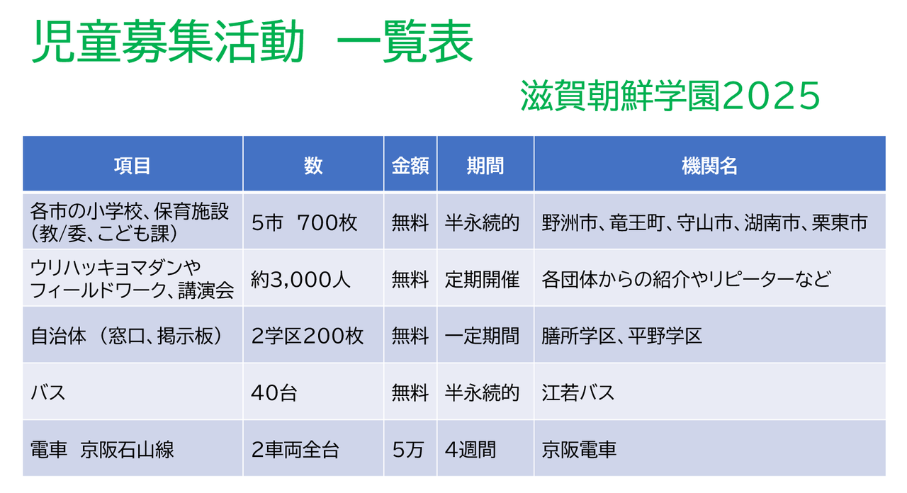 このマンスリーサポーター募集は、滋賀朝鮮学園を「今のまま維持するため」ではなく、