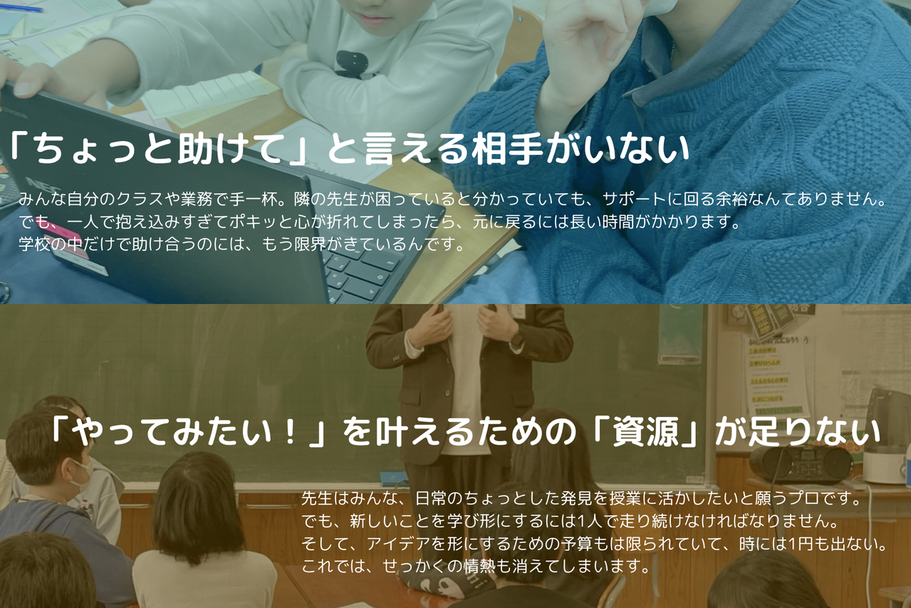 だからこそ、僕たちは先生が「やりたい」って叫んだ時に、日本中のどの学校でその「やりたい」が形になる未来を当たり前にしたいと思いました。