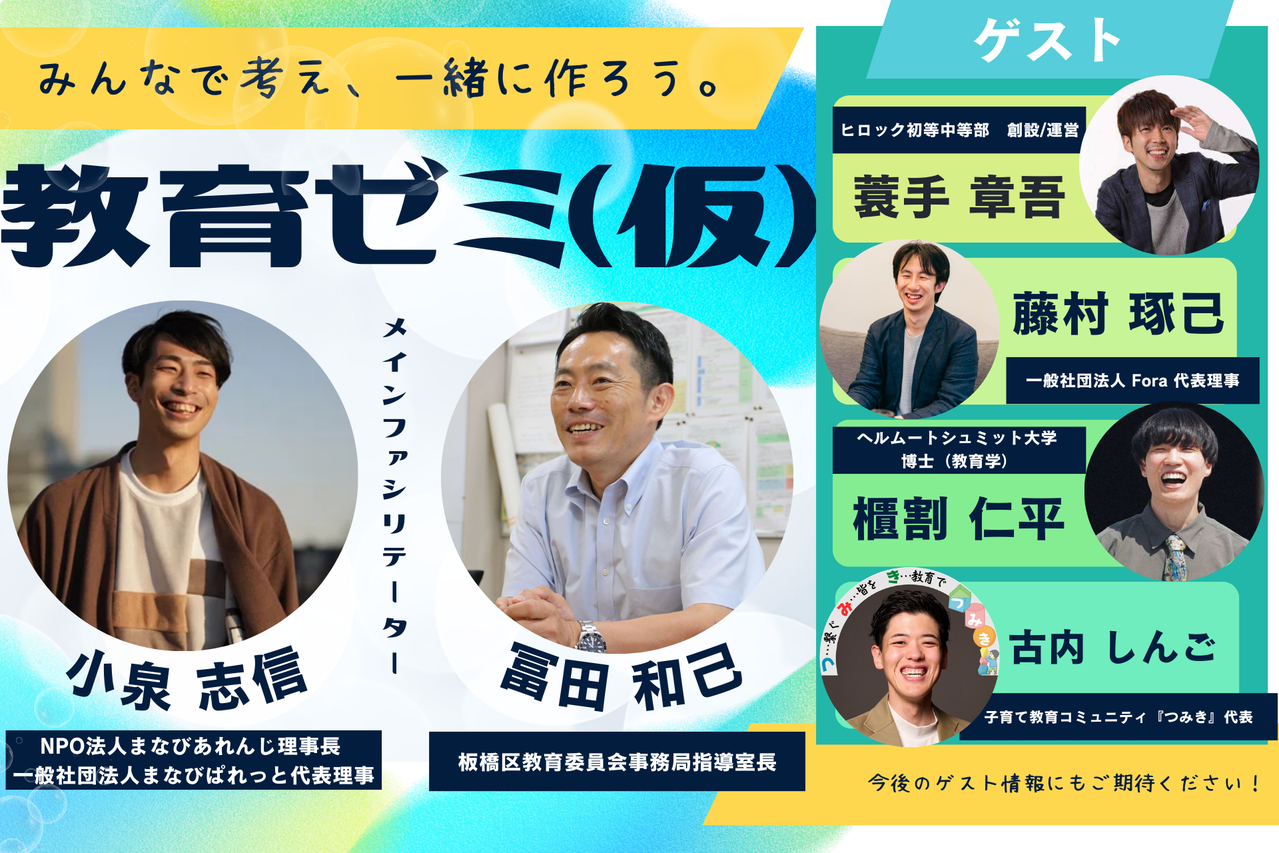 まなびあれんじ理事長/まなびぱれっと代表理事の小泉と板橋区教育委員会事務局指導室長の富田さんがタッグを組んだ教育ゼミを開始します。