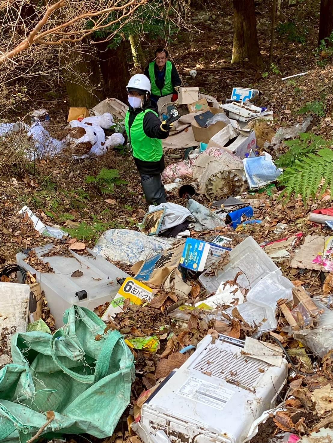 山に不法投棄されたごみは、やがて川に落ち、海へ流れ込みます。
